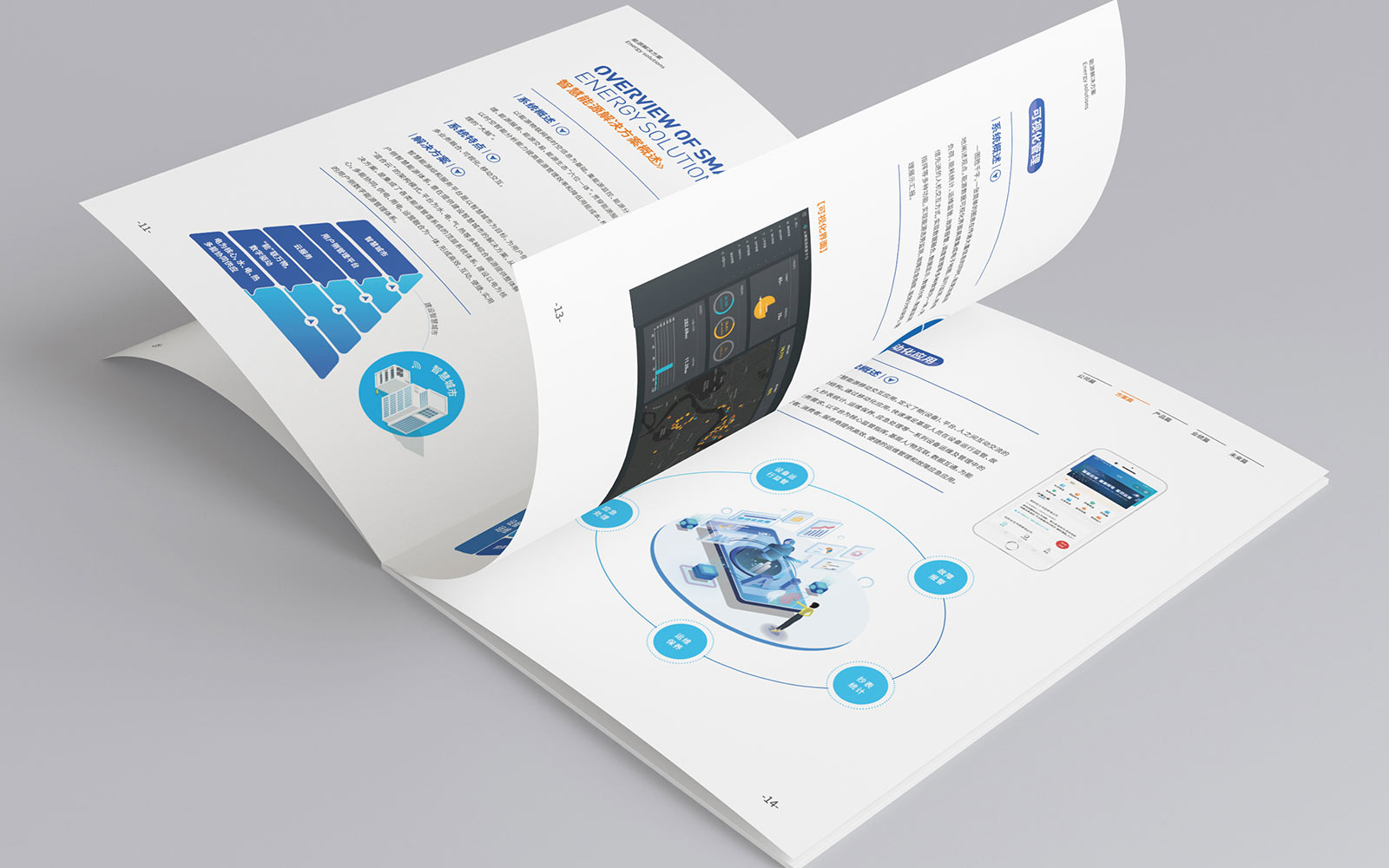 畫冊在設計過程中為實現能源的可視化,進行了2.5D的插畫設計,讓整本畫冊內容美觀、易懂。封面采用了數據化、科技化的設計,貼合企業的行業屬性。