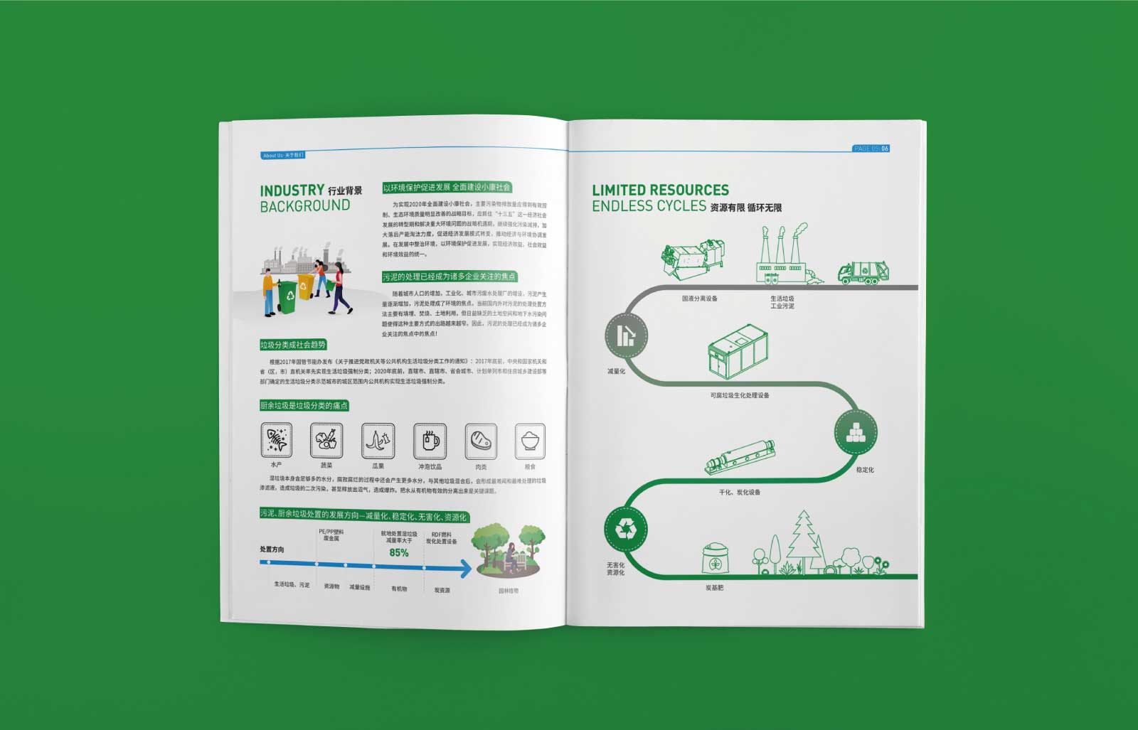 環保企業是綠水青山就是金山銀山的具體實施者,設計工作針對企業屬性走清新路線,而且相關行業較多,突破比較困難。石特廣告以10多年經驗為各類環保企業設計宣傳冊和畫冊,項目有保障。