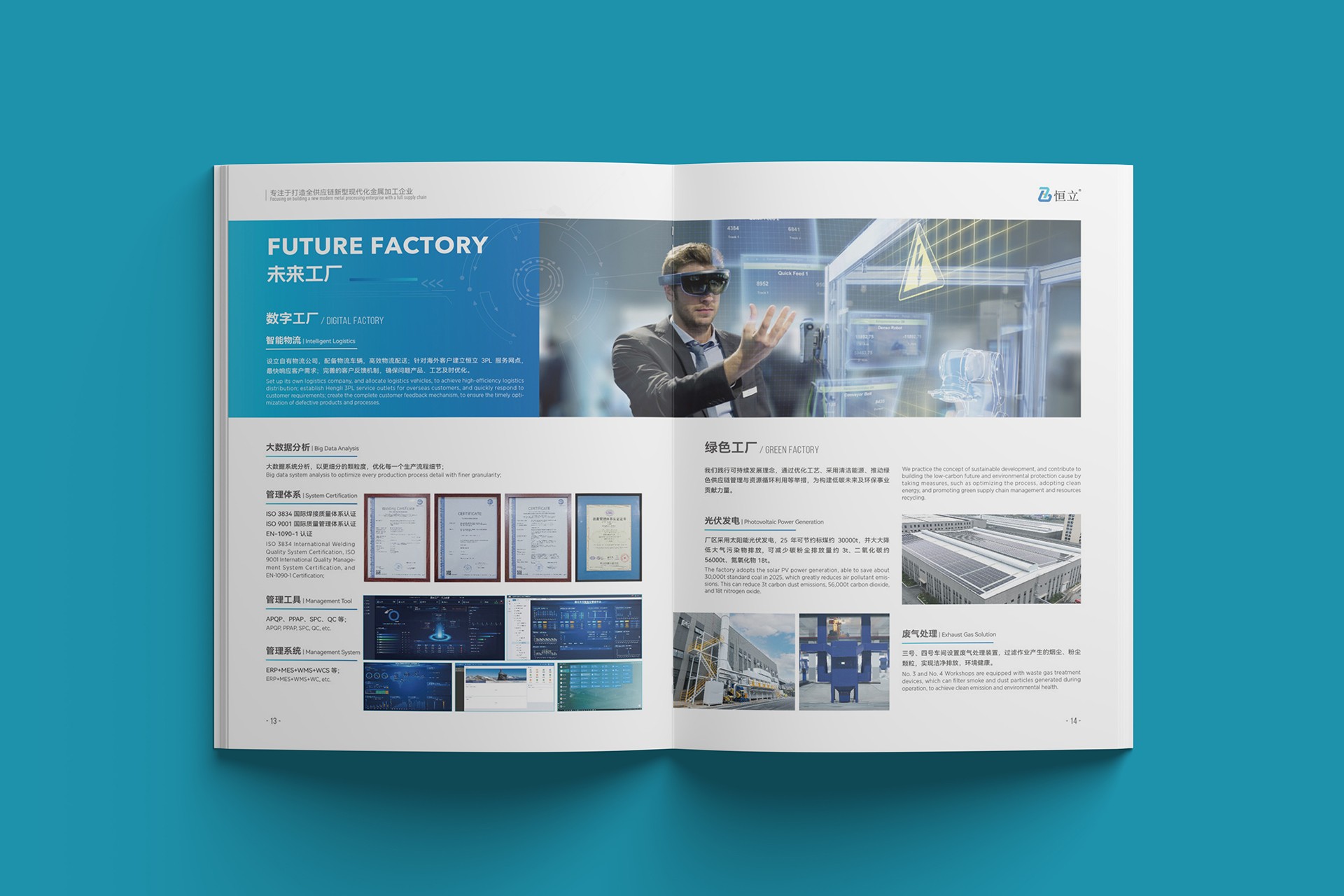 內頁布局:通過模塊化設計清晰展示恒立的核心業(yè)務,包括原材料供應鏈、精密加工技術、表面處理工藝及物流配送體系,圖文并茂,一目了然。