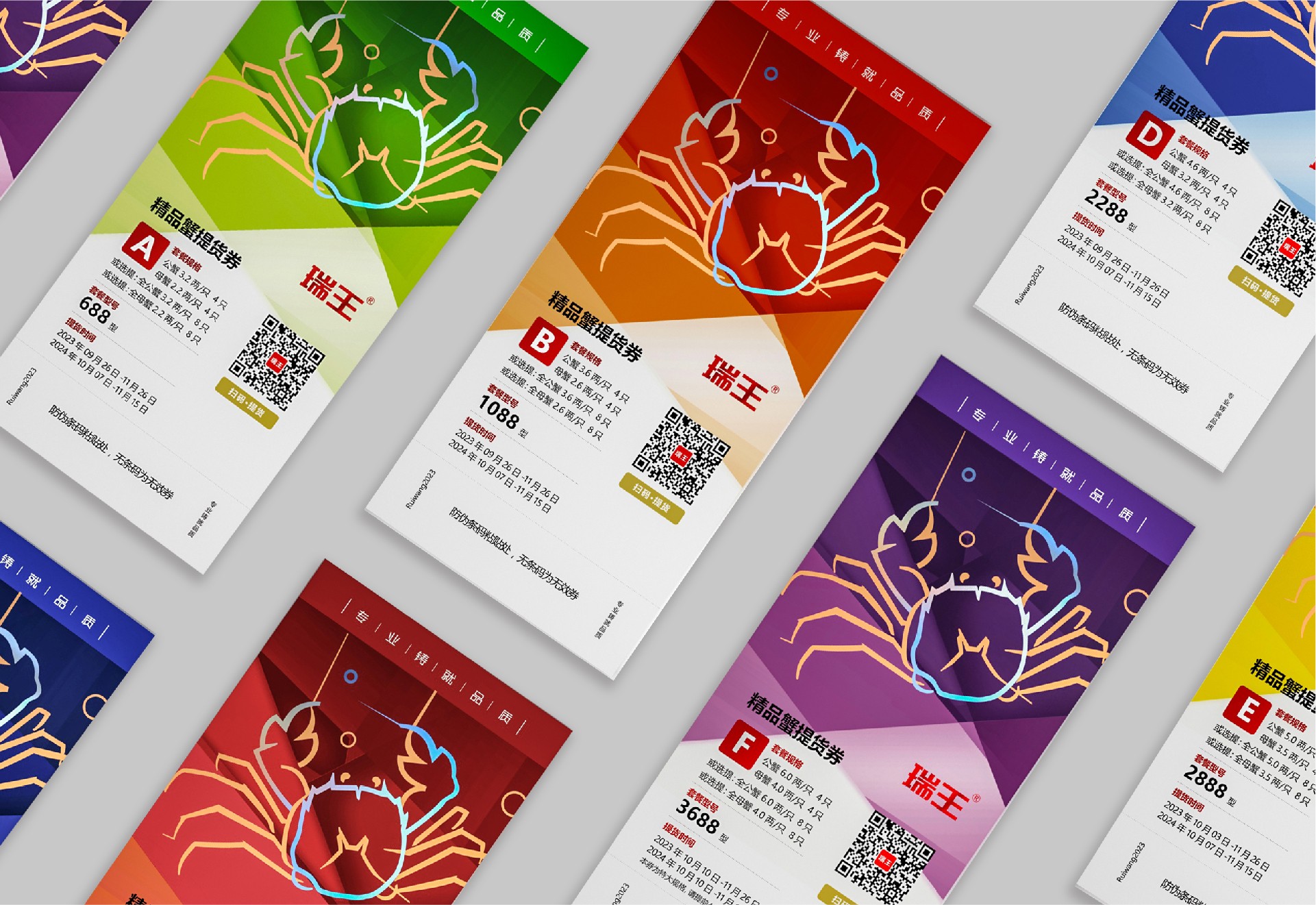 采用信封式包裝,以黃色為主色調,代表大閘蟹的鮮美。在信封的正面上部印有瑞王大閘蟹的LOGO,以突出品牌形象,并附上“品質十三年”的口號,展示企業的信譽度。
