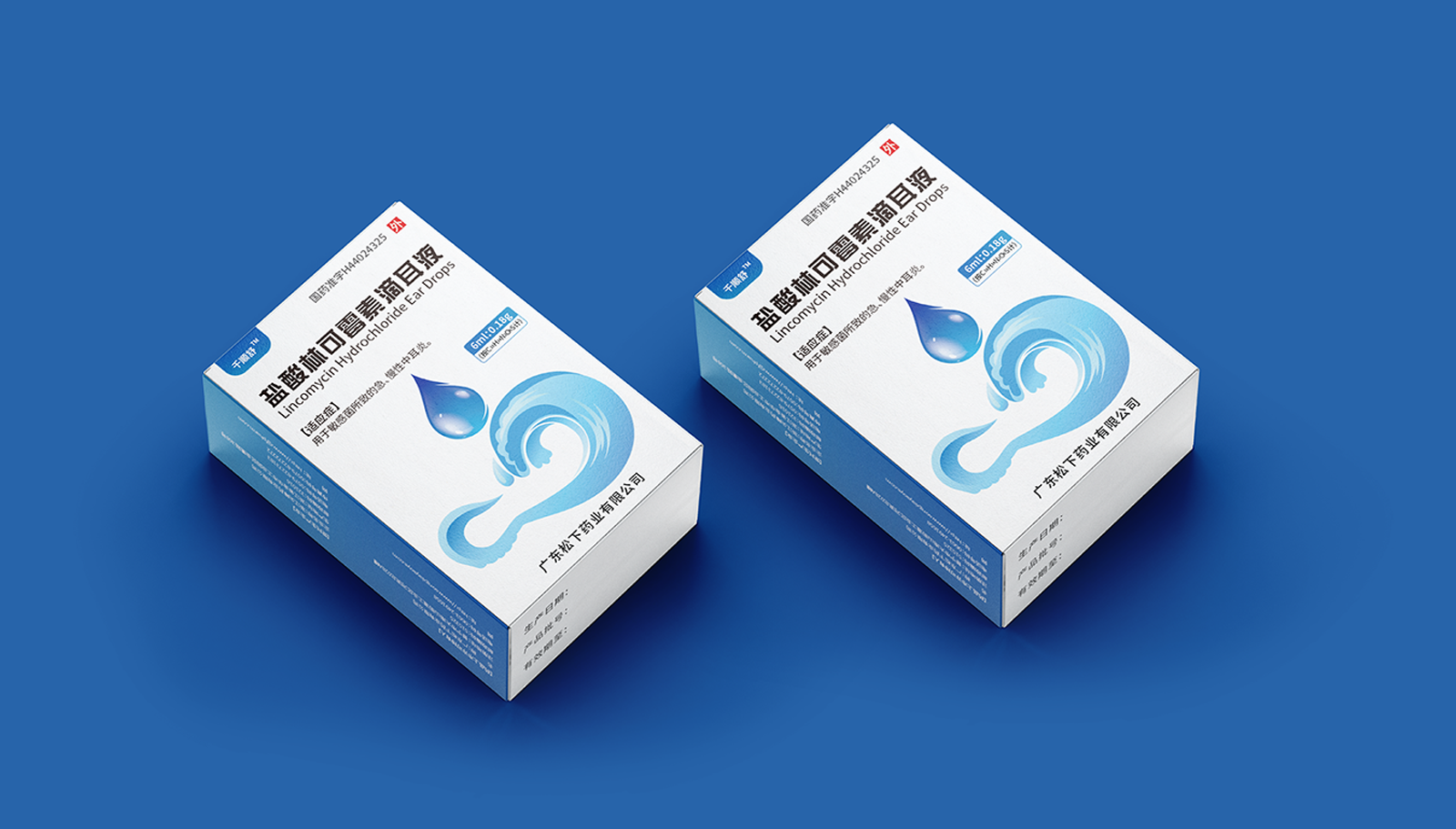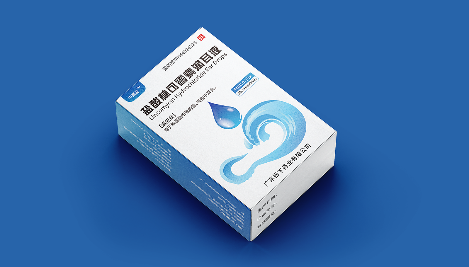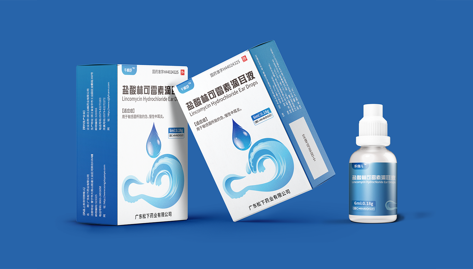 創(chuàng)意:包裝主畫面呈現(xiàn)的是用藥的畫面,水滴代表產(chǎn)品劑型并突出放大處理,下部分的耳廓外型與海浪結(jié)合,通過大海的意象,表達(dá)寧靜、舒適、清潔,象征著良好的用藥體驗(yàn)。版式:在版式上,結(jié)構(gòu)簡約、干凈、大氣的風(fēng)格,規(guī)格、適應(yīng)癥等核心信息突出顯示,字體清晰易辨,整體主次分明,重點(diǎn)突出。色彩:考慮到患者心理感受,色彩上以藍(lán)色為主色調(diào),藍(lán)色代表鎮(zhèn)靜、潔凈與安全,一來加深企業(yè)穩(wěn)定可靠的印象,二來對(duì)患者起到安撫的情緒和心里暗示。
