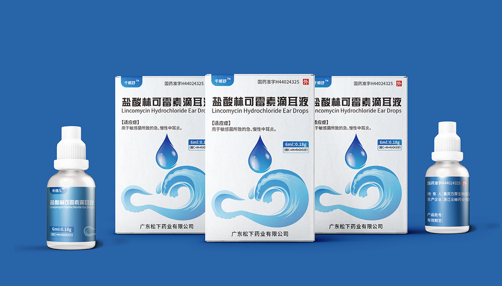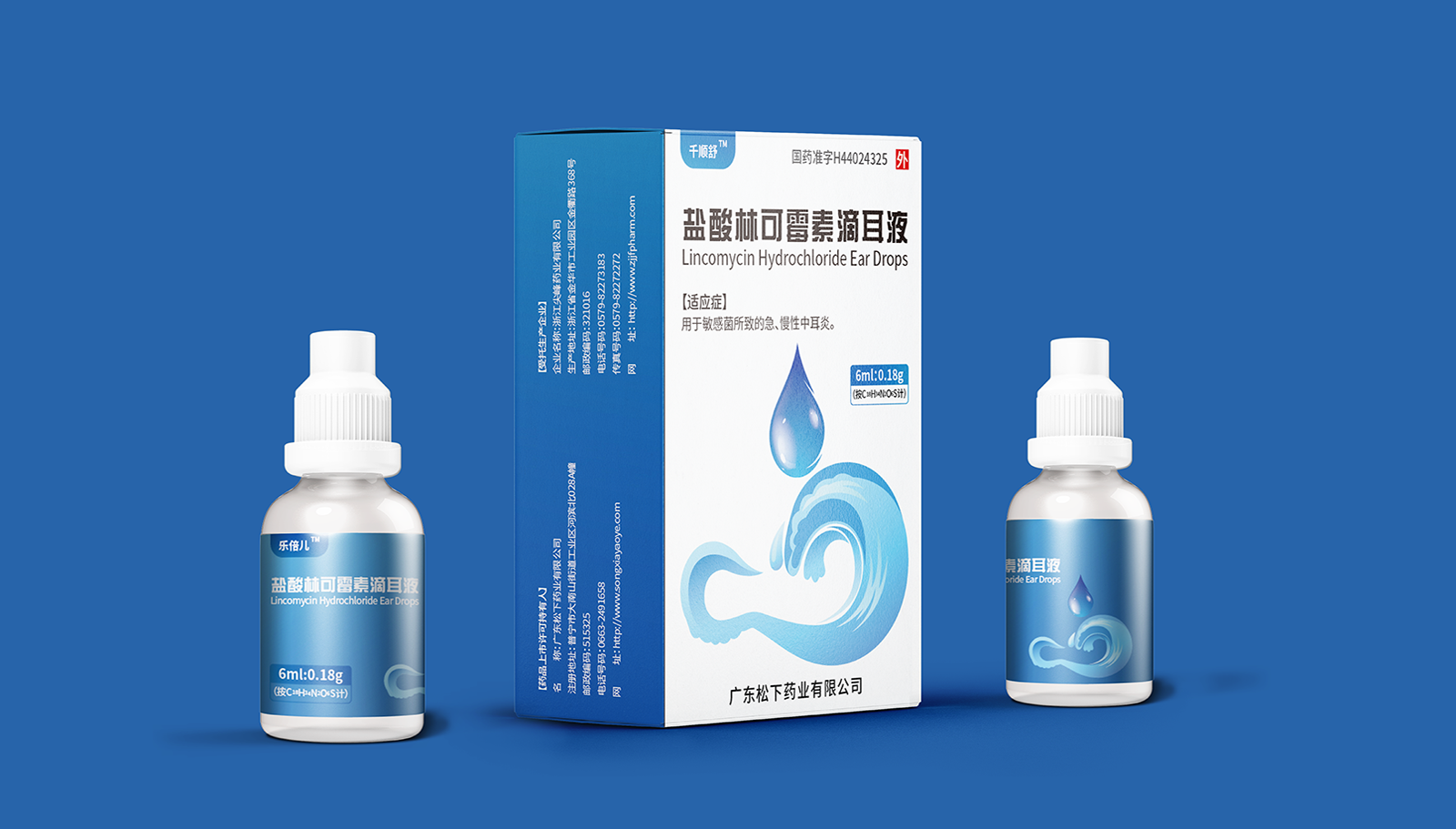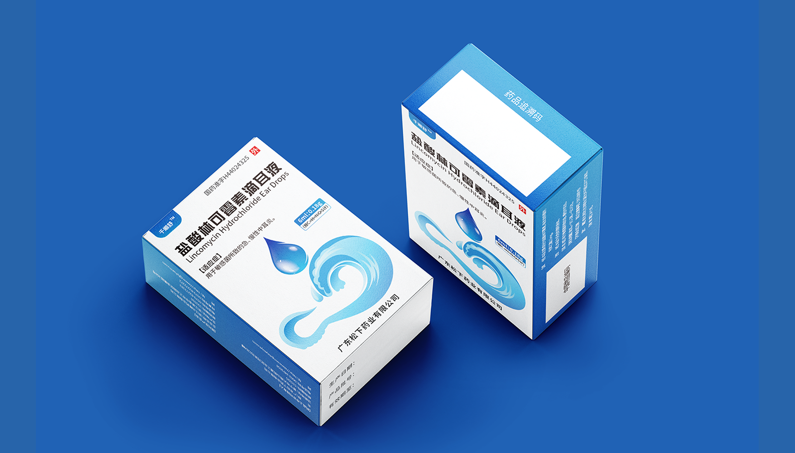 創(chuàng)意:包裝主畫面呈現(xiàn)的是用藥的畫面,水滴代表產(chǎn)品劑型并突出放大處理,下部分的耳廓外型與海浪結(jié)合,通過大海的意象,表達(dá)寧靜、舒適、清潔,象征著良好的用藥體驗(yàn)。版式:在版式上,結(jié)構(gòu)簡約、干凈、大氣的風(fēng)格,規(guī)格、適應(yīng)癥等核心信息突出顯示,字體清晰易辨,整體主次分明,重點(diǎn)突出。色彩:考慮到患者心理感受,色彩上以藍(lán)色為主色調(diào),藍(lán)色代表鎮(zhèn)靜、潔凈與安全,一來加深企業(yè)穩(wěn)定可靠的印象,二來對(duì)患者起到安撫的情緒和心里暗示。
