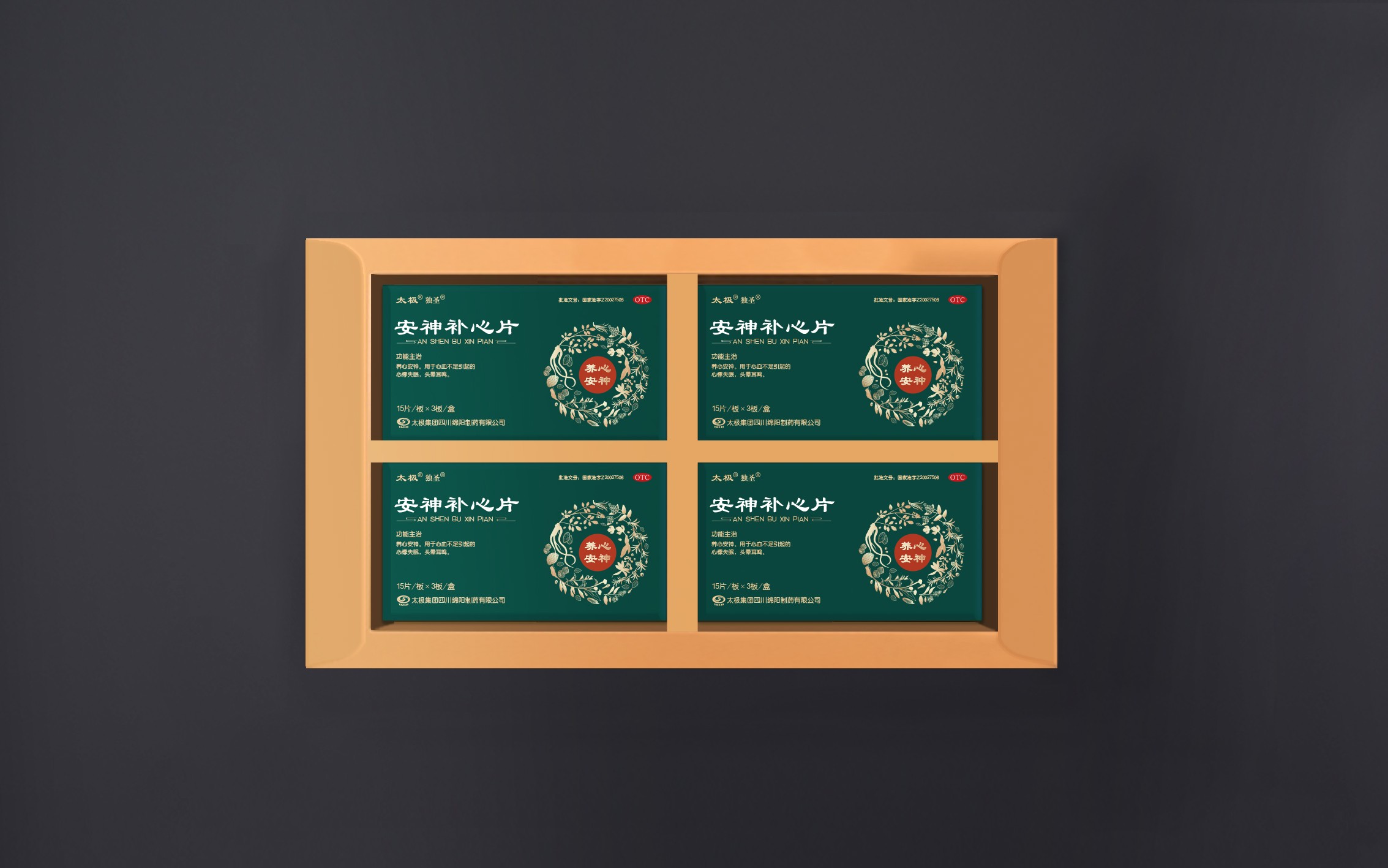 畫面以傳統(tǒng)色為主基調(diào),傳統(tǒng)色彩強(qiáng)烈,古方氣息濃郁,同時(shí)整體版式簡潔大方;畫面中,+味藥材環(huán)繞,代表取道地藥材之精華,將中藥以簡形插畫表現(xiàn)出來,藥材靈動(dòng)、真實(shí)、原生態(tài)的形象既增加設(shè)計(jì)之美感,又凸顯產(chǎn)品之珍貴,更彰顯企業(yè)與品牌之底蘊(yùn)。