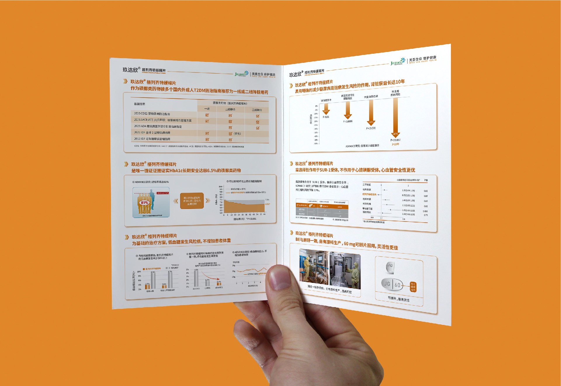 玖達(dá)欣”格列齊特緩釋片-2型糖尿病的基礎(chǔ)用藥,適用人群廣泛,持久降糖,安全優(yōu)效。 玖達(dá)欣”格列齊特緩釋片-24小時(shí)平穩(wěn)有效控制血糖,維持5年以上的長(zhǎng)期血糖控制。 玖達(dá)欣”格列齊特緩釋片一磺脲類(lèi)中低血糖風(fēng)險(xiǎn)最低,體重影響小。玖達(dá)欣”格列齊特緩釋片一降低血管并發(fā)癥,長(zhǎng)期使用安全性更優(yōu),腎臟獲益長(zhǎng)達(dá)10年。 玖達(dá)欣”格列齊特緩釋片一自有原料生產(chǎn),60 mg 可掰片服用,靈活性更佳。